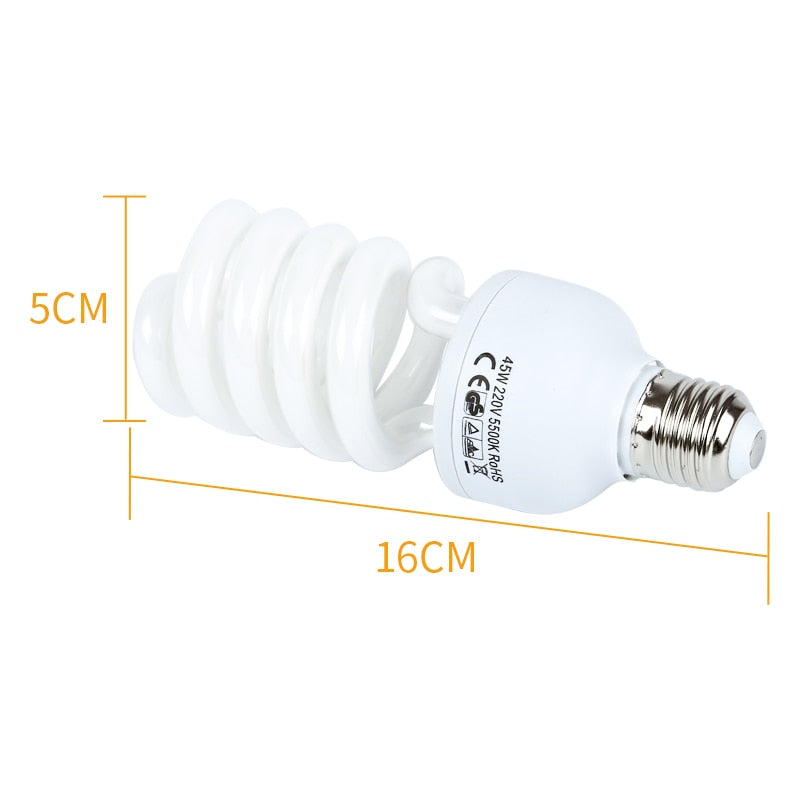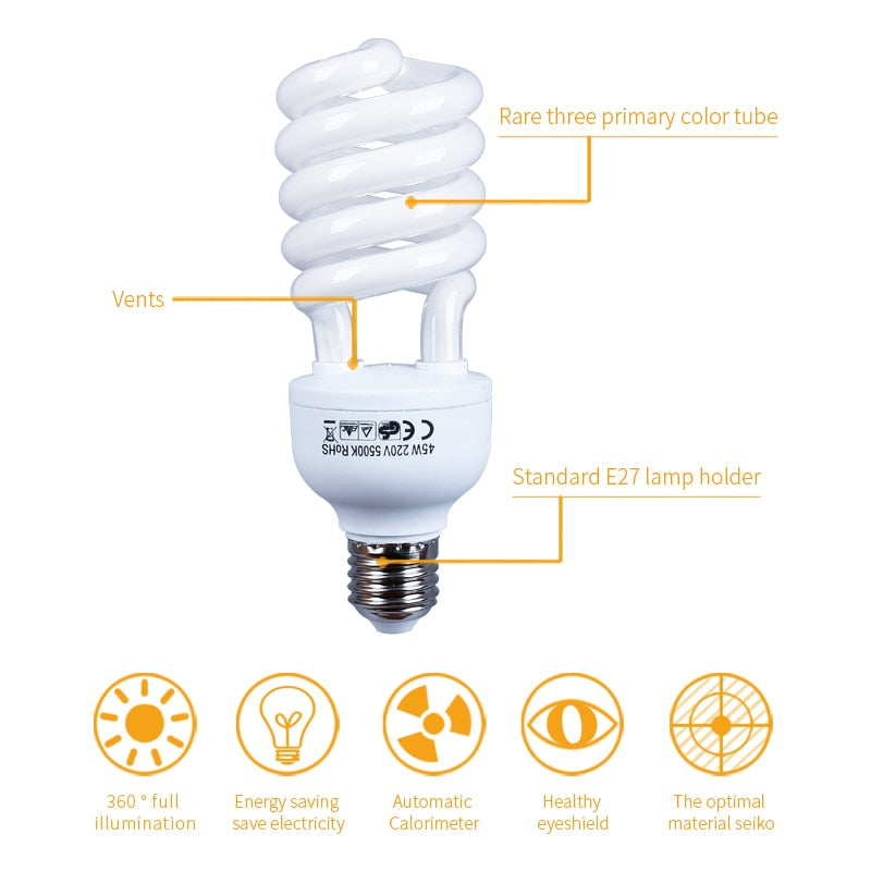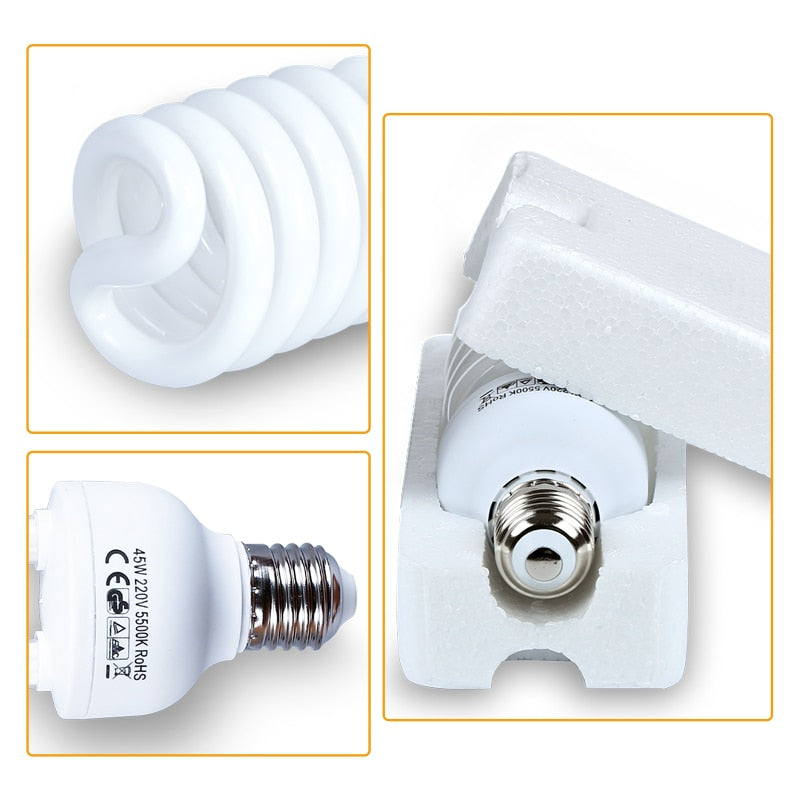 Ampoule de jour 45W: ampoule 5500K équilibrée en lumière du jour fournit des couleurs vraies et précises pour la plupart des studios de vidéo et de photographie. Sans scintillement, adapté pour le studio d'éclairage de photographie, obtenez de meilleurs effets photographiques. Offert 2 fusibles supplémentaires en cadeau (pour éviter que les surtensions en raison d'un temps de travail excessif).