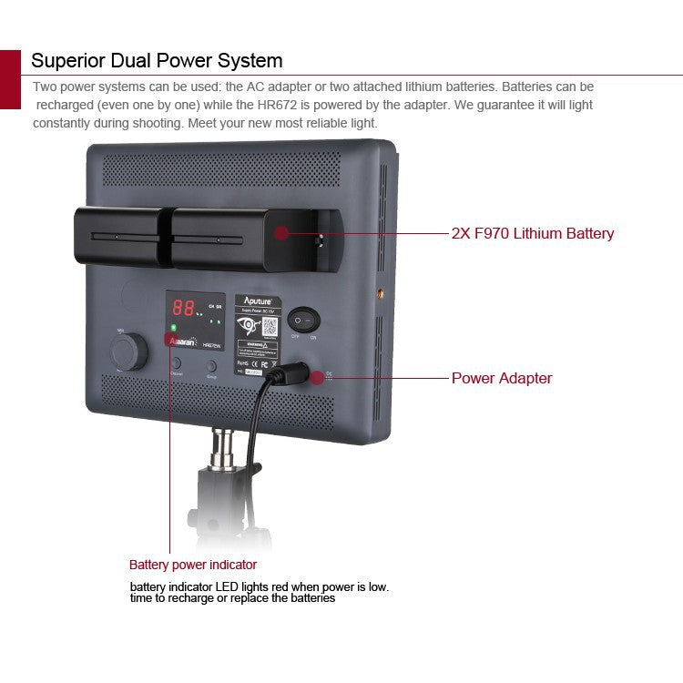 Aputure HR672S haute CRI95 + LED photographie vidéo lumière sans fil télécommande
