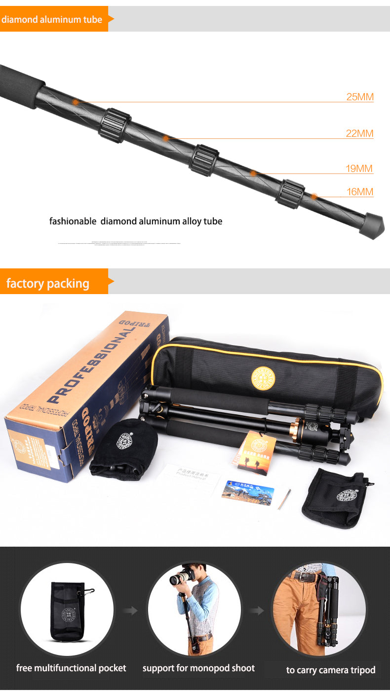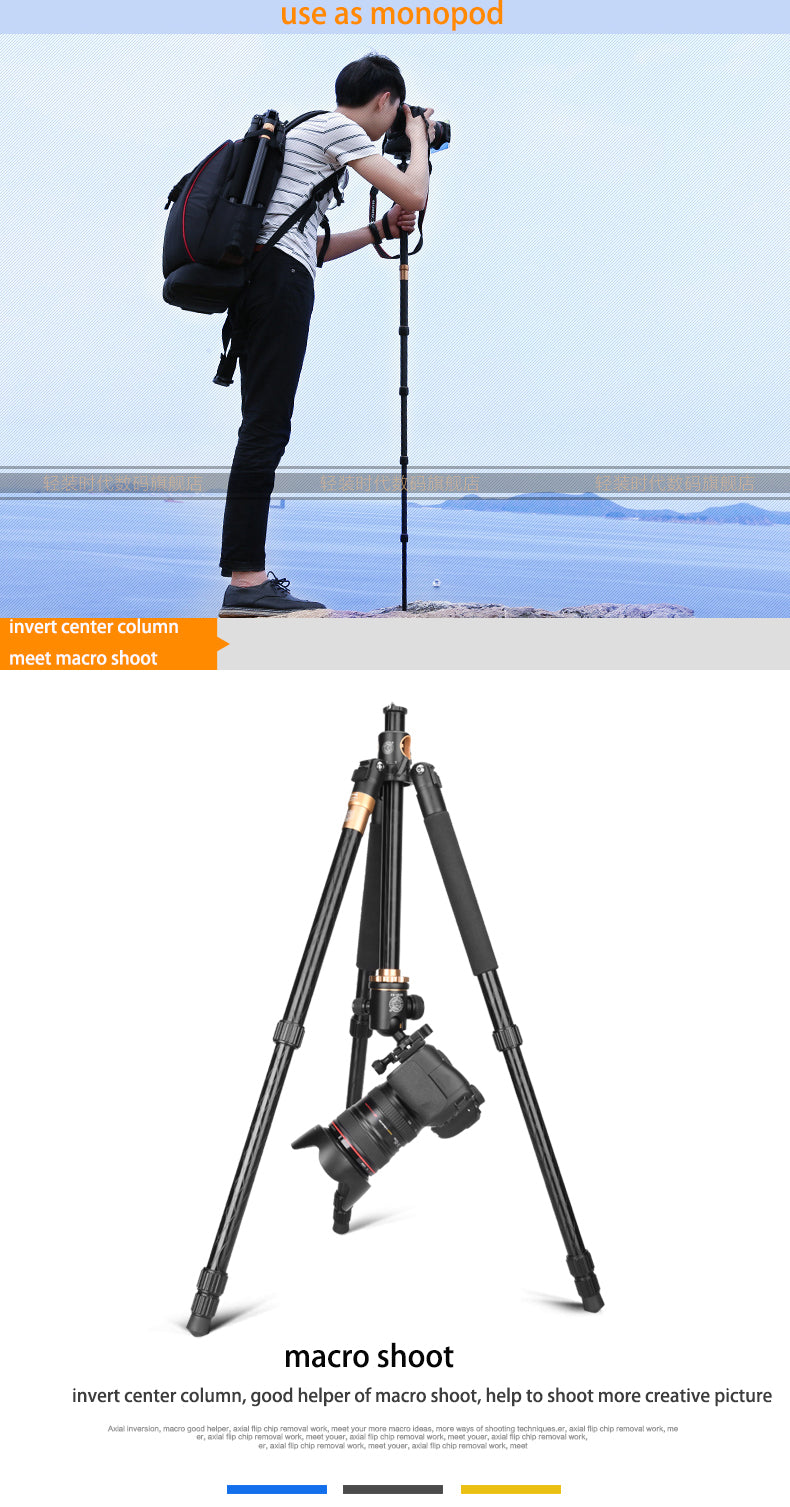 10. Monopod Détachable : il peut être transformé en un monopod seul sans pieds pour vos photographie plus diversifiée. (Note: Pour les caméra reflex équipé d'un téléobjectif, il est conseillé d'ajouter un support supplémentaire pour l’objectif offrant une meilleure stabilité de l'image)