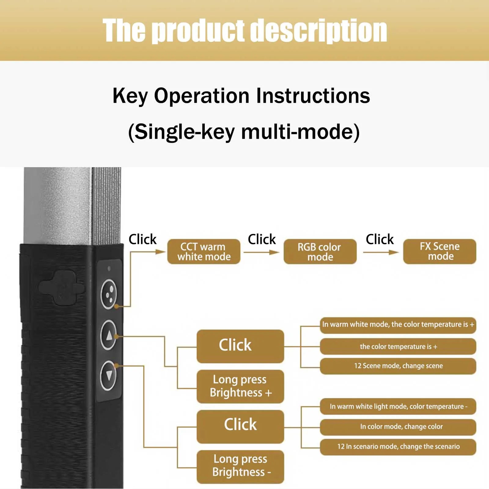 3. Multi-usage et télécommande, le bas de la baguette lumineuse est équipé d'un trou de vis standard de 1/4 de pouce, qui peut être monté sur la plupart des accessoires tels qu'un support d'éclairage ou un trépied, livré avec une télécommande, peut contrôler librement la couleur de la lumière et la luminosité via la télécommande. contrôle, très pratique à utiliser.