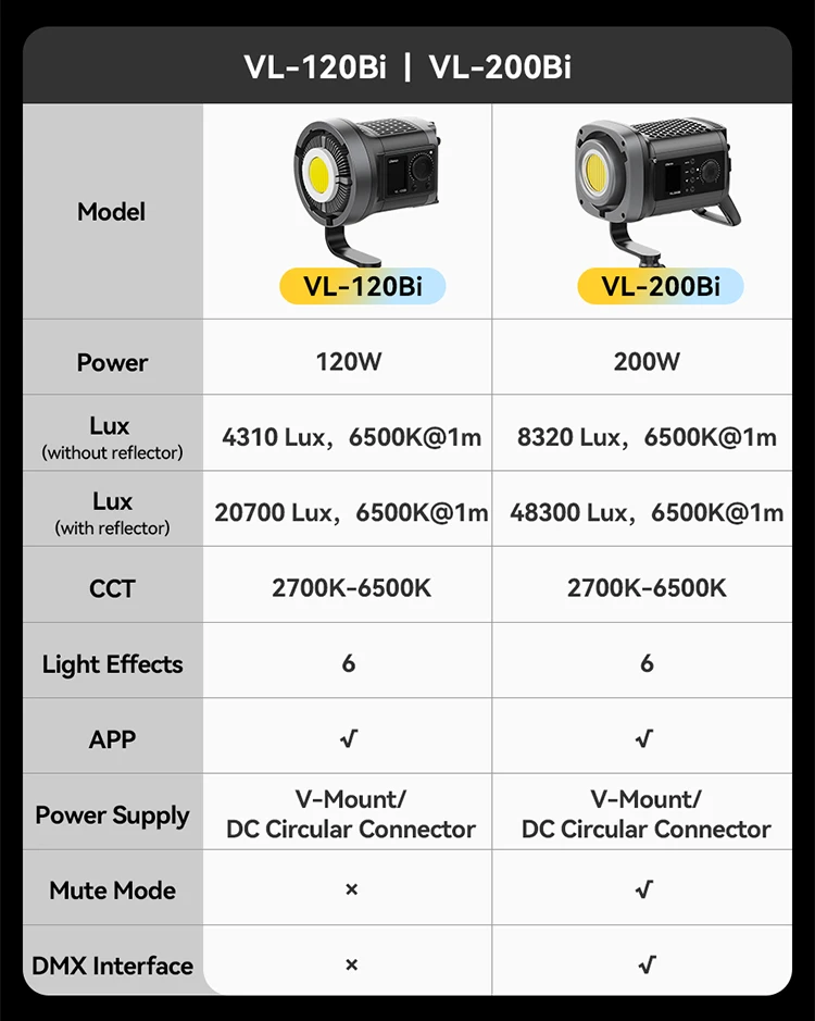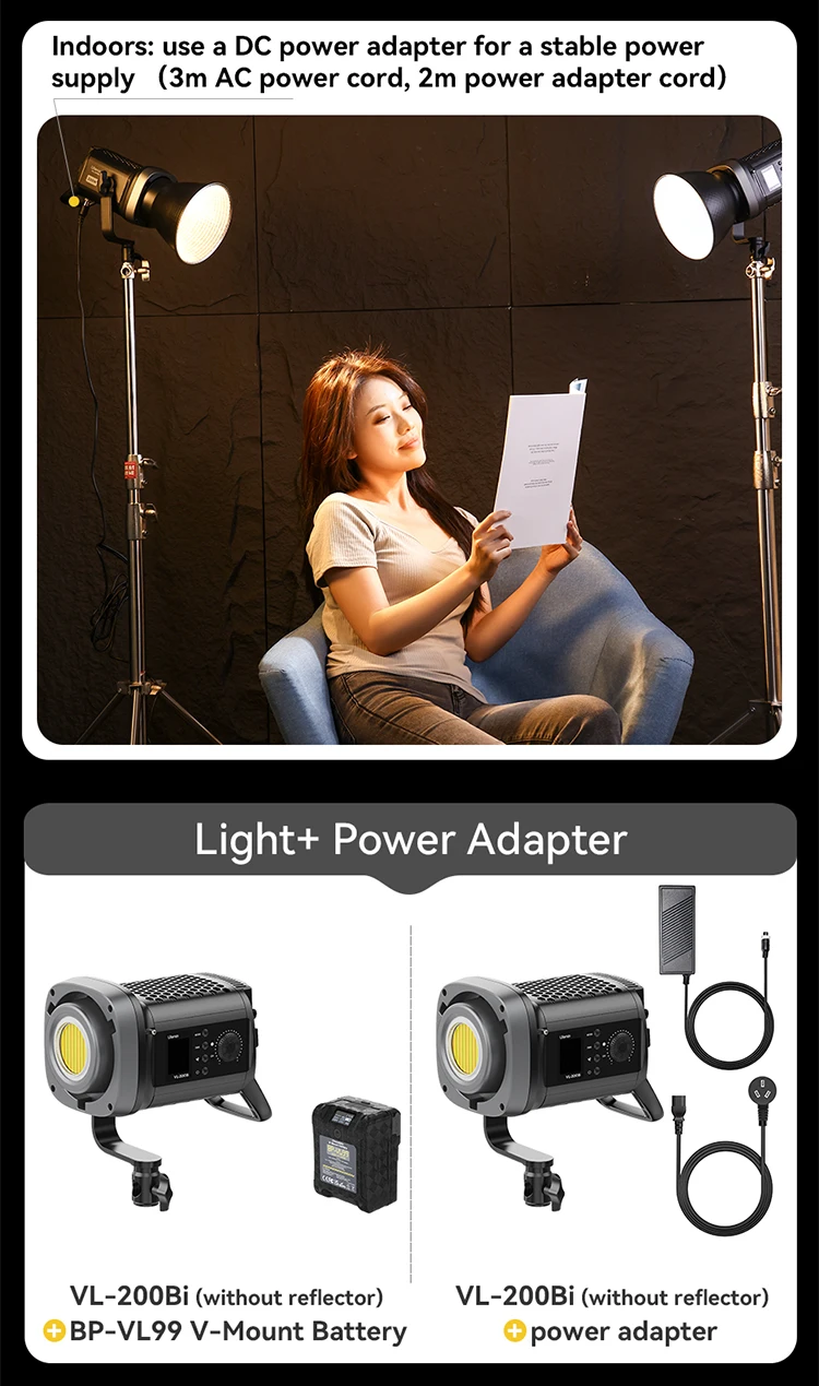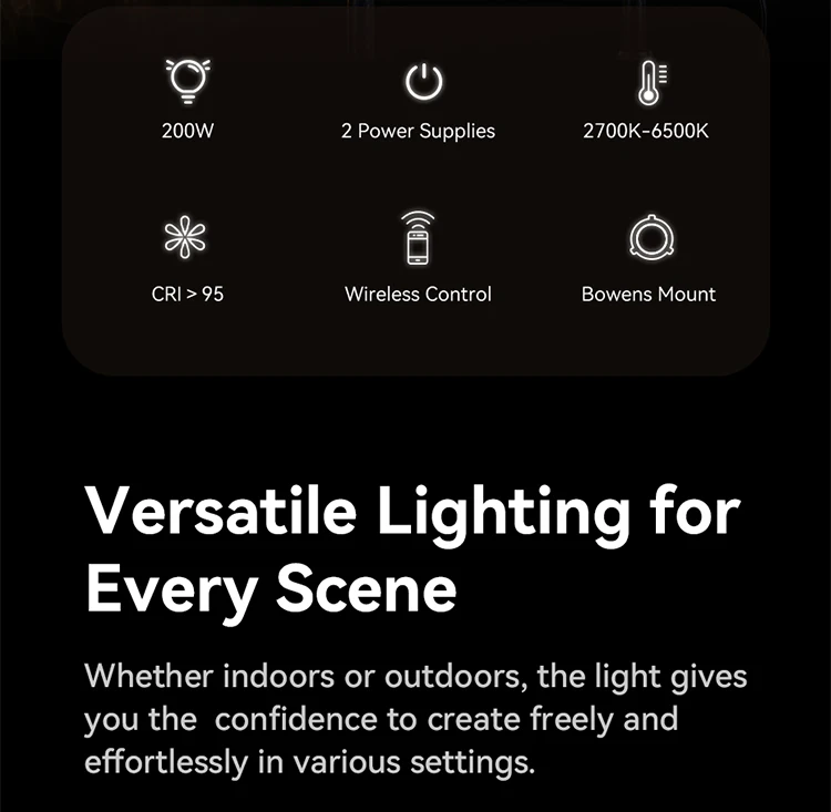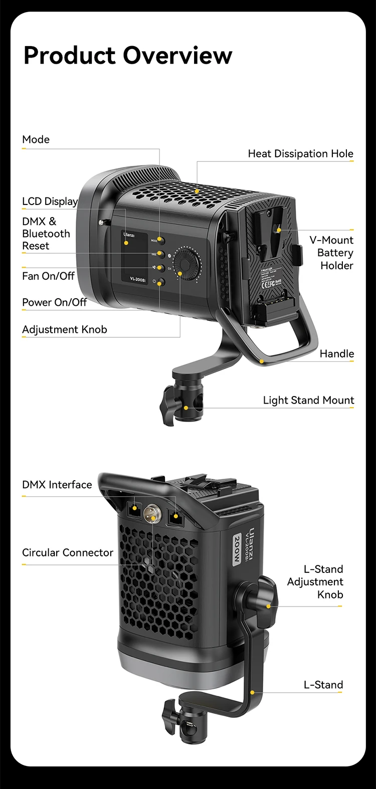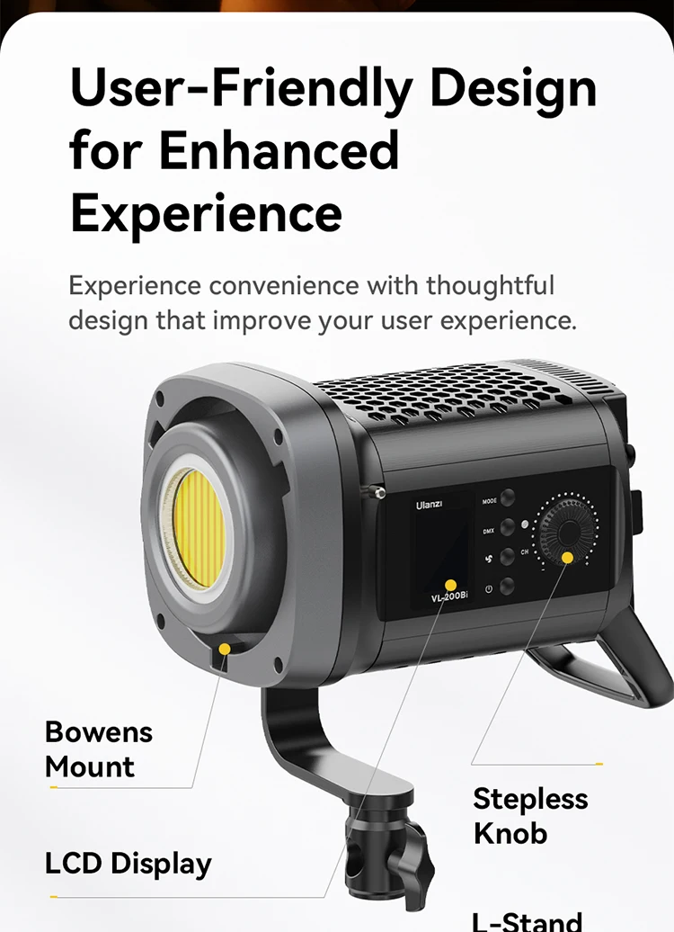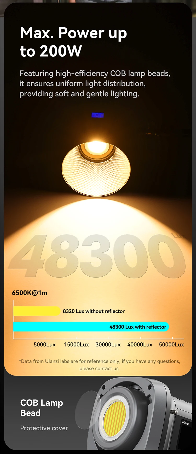 Eclairage LED studio Ulanzi VL-200Bi 200W bicolore réglable continu sans fil APP contrôle pour Studio