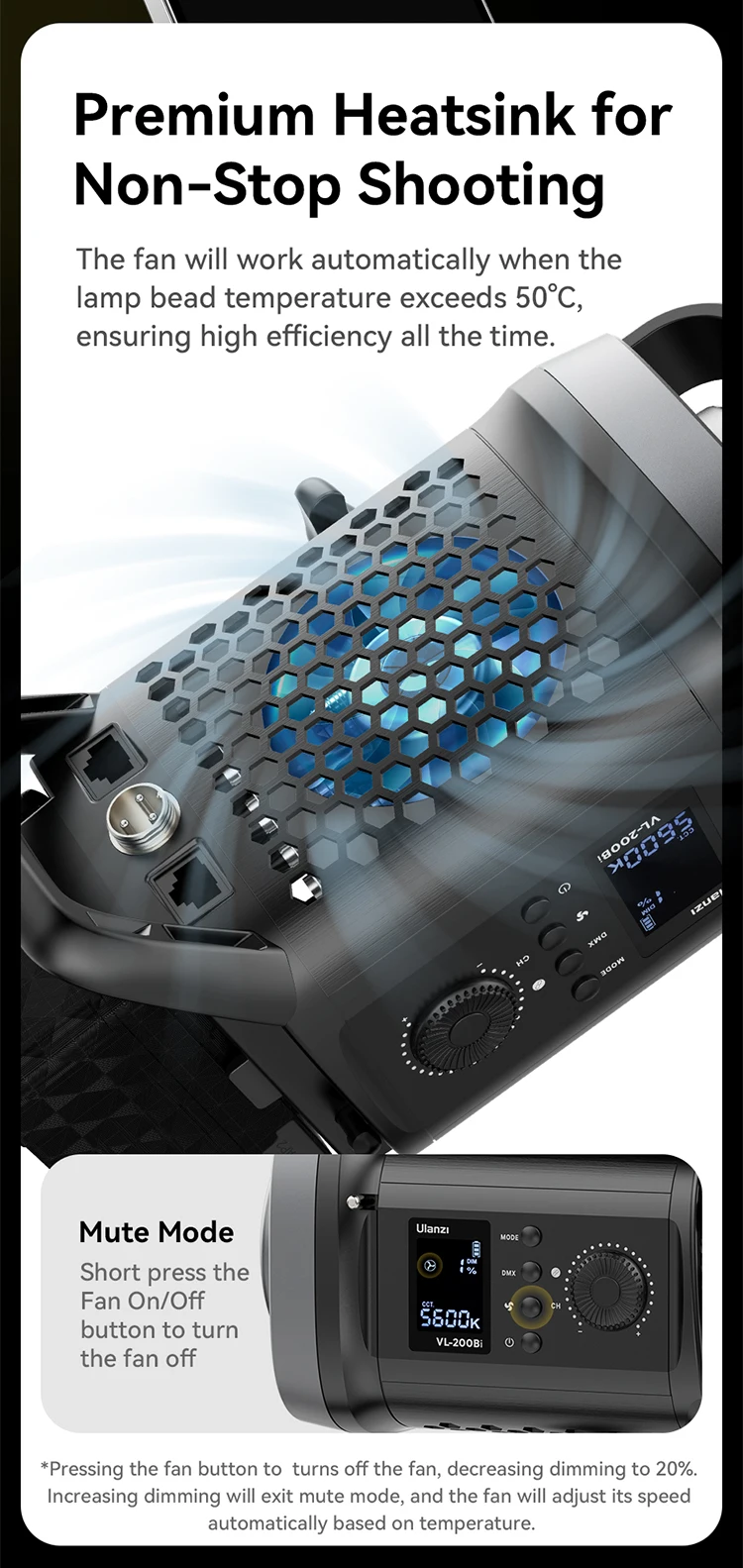Le ventilateur fonctionnera automatiquement lorsque la température des perles de la lampe dépassera 50. Garantissant une efficacité élevée à tout moment