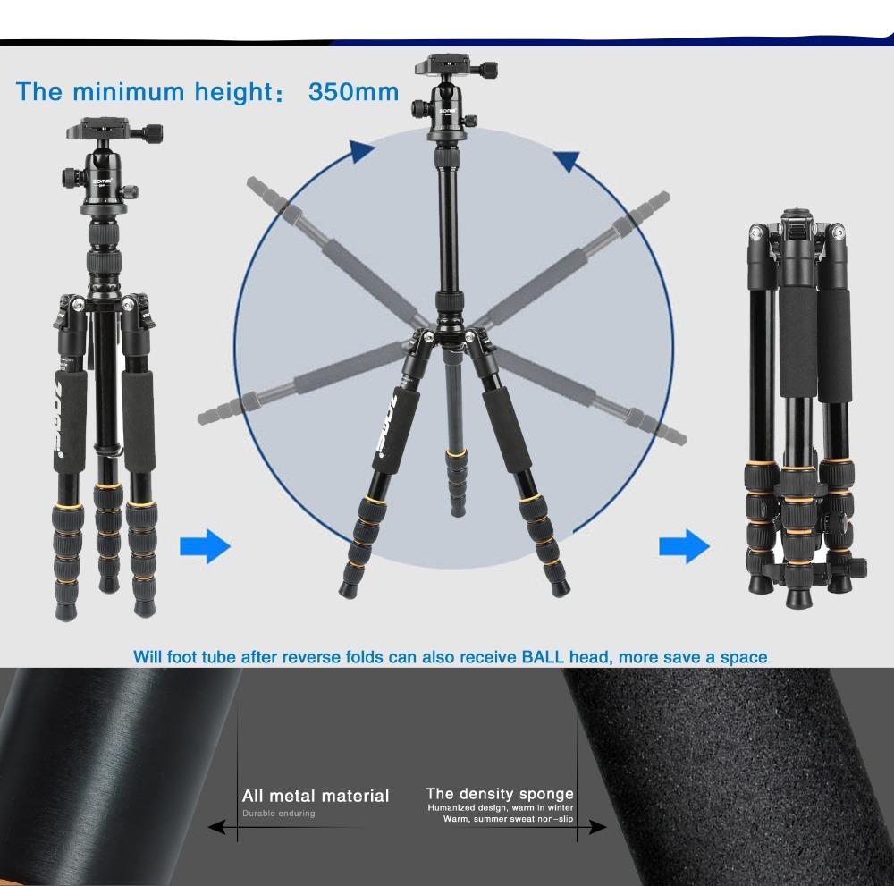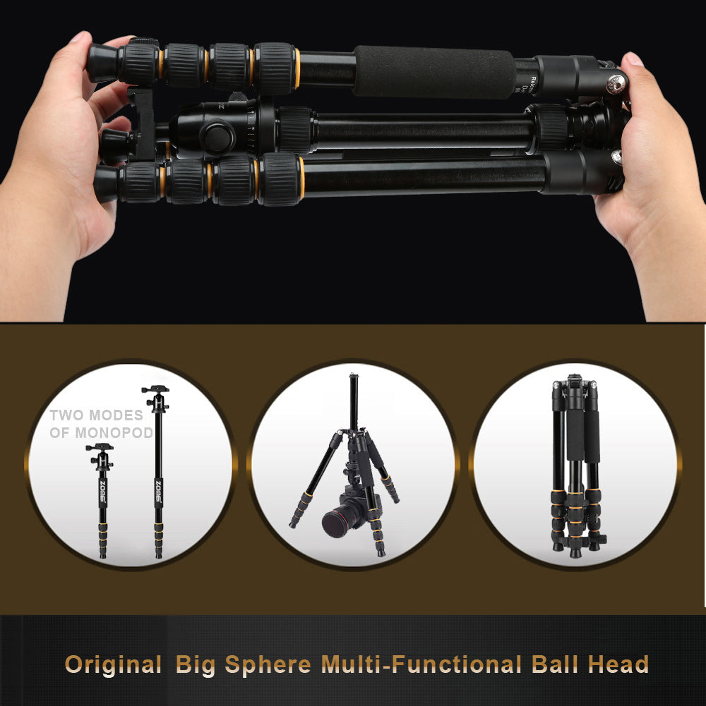 Trépied professionnel ZOMEI Traveler Q666C haut de gamme en fibre de carbone