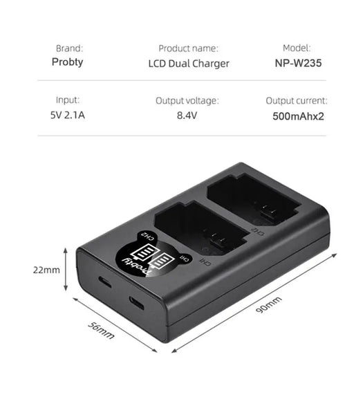 Batterie Probty 2600mAh NP-W235 NP W235 + chargeur double pour Fujifilm X-T5 X-T4 GFX 100S X-H2S GFX 50S II VG-XT4 Grip