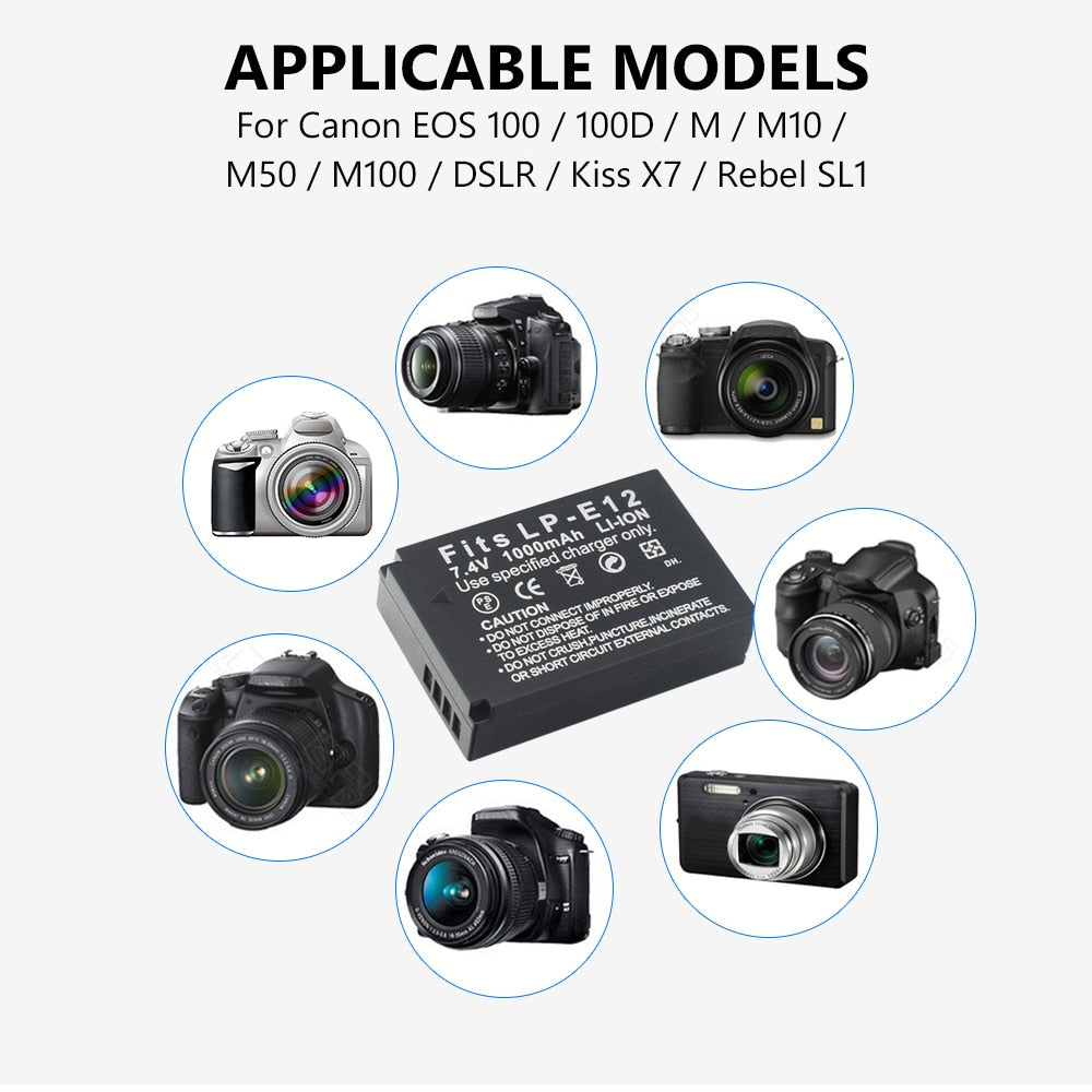 2* Batterie générique PULUZ LP-E12 pour canon 100D M10 M50 M100 KISS X7 Rebel SL1