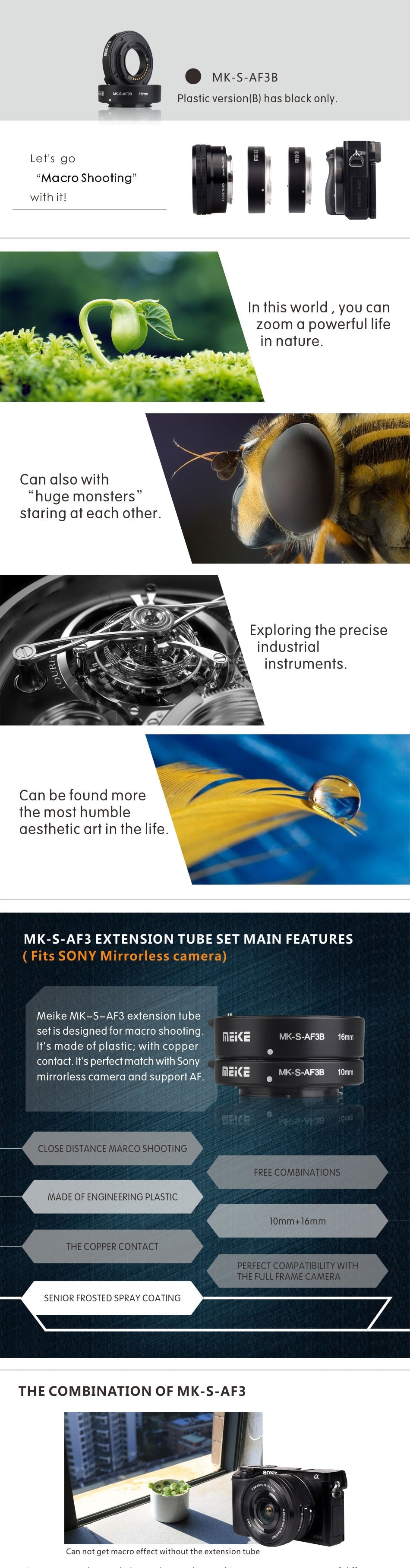 Extension ring Meike MK-S-3B AF pour macro pour Sony E-Mount A6300 A6500 A6000 A7 A7II A7III A7SII NEX-7 NEX-6 ...