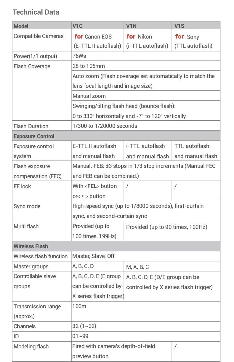 • 1 * Flash Godox V1-N/S/