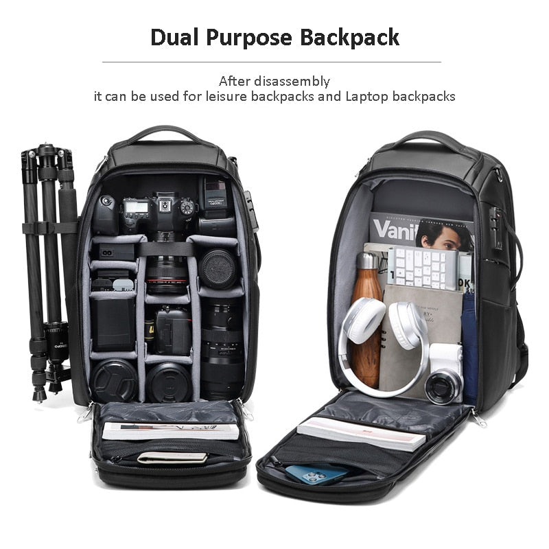 1. Multifonctionnel, adapté aux affaires/voyage/voyage/extérieur/photographie. Ce sac à dos est destiné aux photographes professionnels, non seulement pour organiser des objectifs réguliers, des téléobjectifs, mais aussi pour stocker des flashs, des chargeurs, et plus encore. Sangles latérales pour trépieds.
