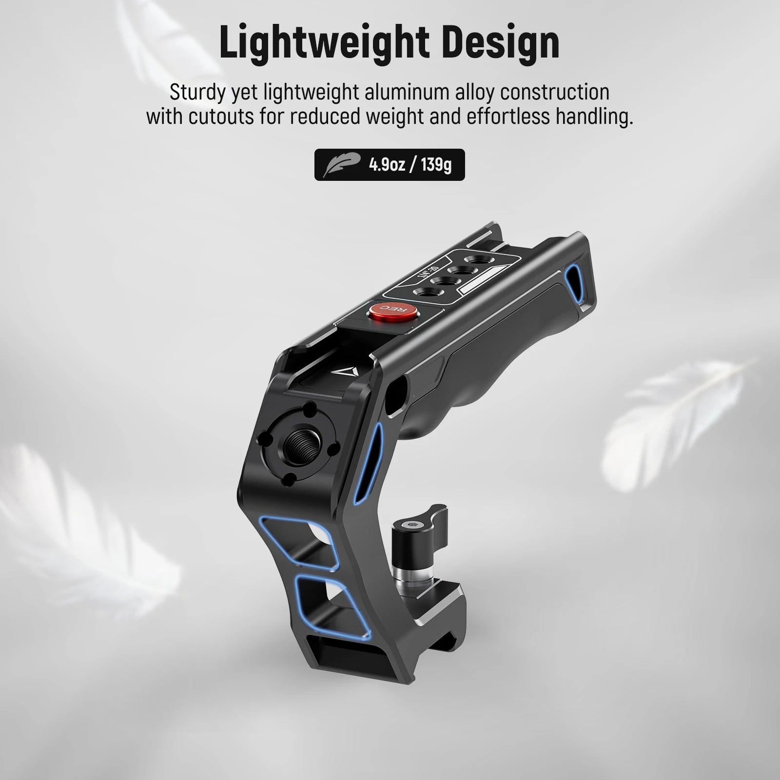 【Poignée ergonomique en silicone】La poignée ergonomique en silicone souple offre une prise confortable et sûre qui réduit la fatigue des mains pendant les sessions de tir prolongées, parfaite pour les prises de vue à angle bas ou en pot. À seulement 4.9oz/139g, la conception évidée rend la poignée assez légère et réduit la tension du bras pour la prise de vue de longue durée