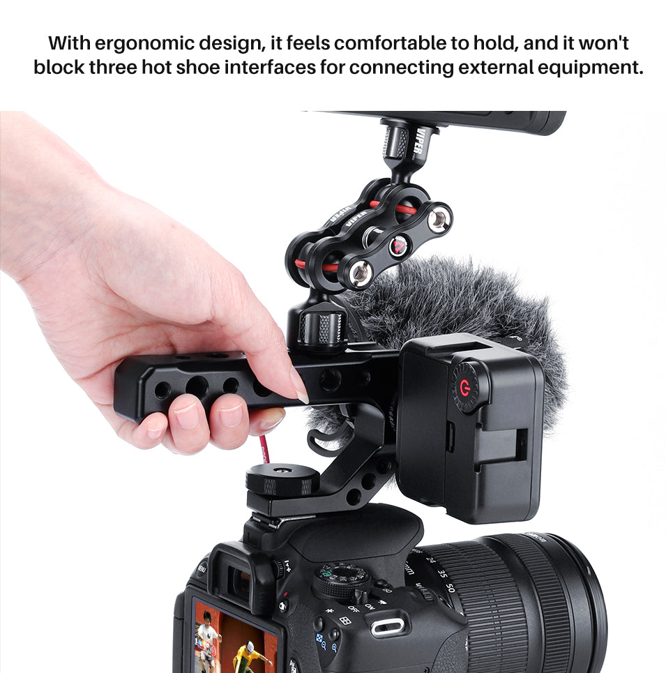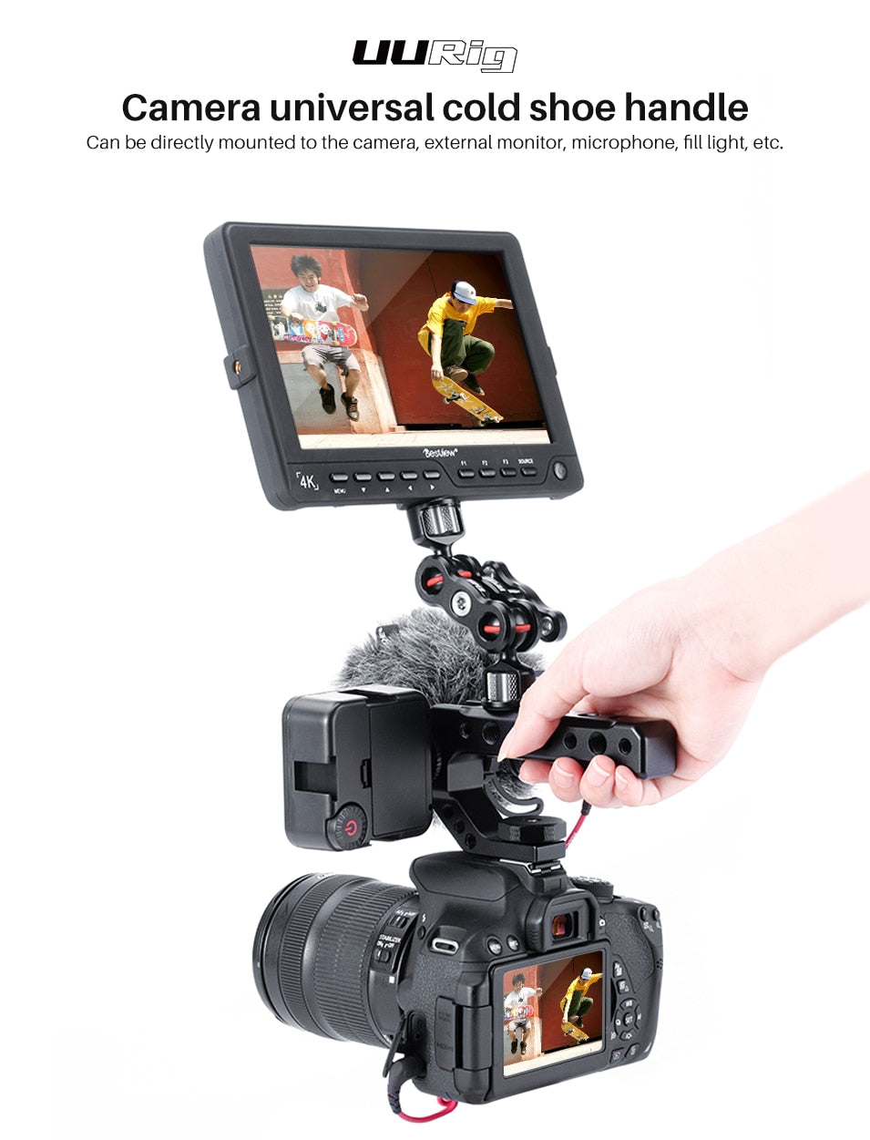 Le petit +: poignée universelle pour tout type de reflex, moniteur lcd, microphone....