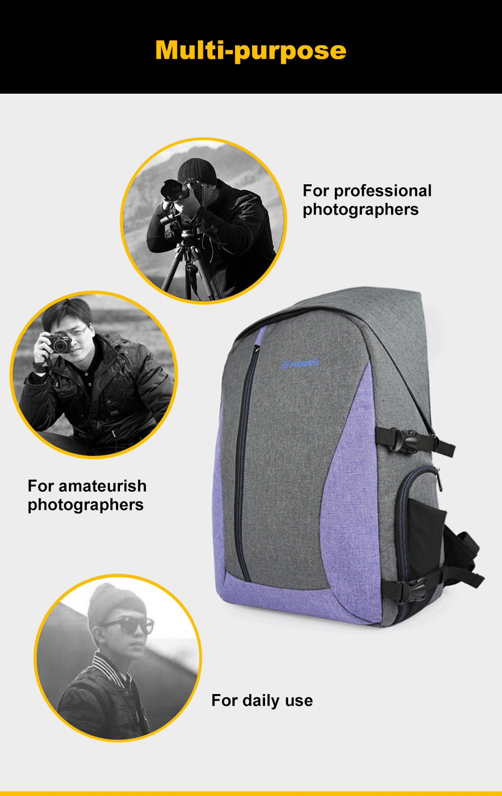Poche intérieure principale permet de ranger facilement un appareil photo, 2 objectifs et un flash.
