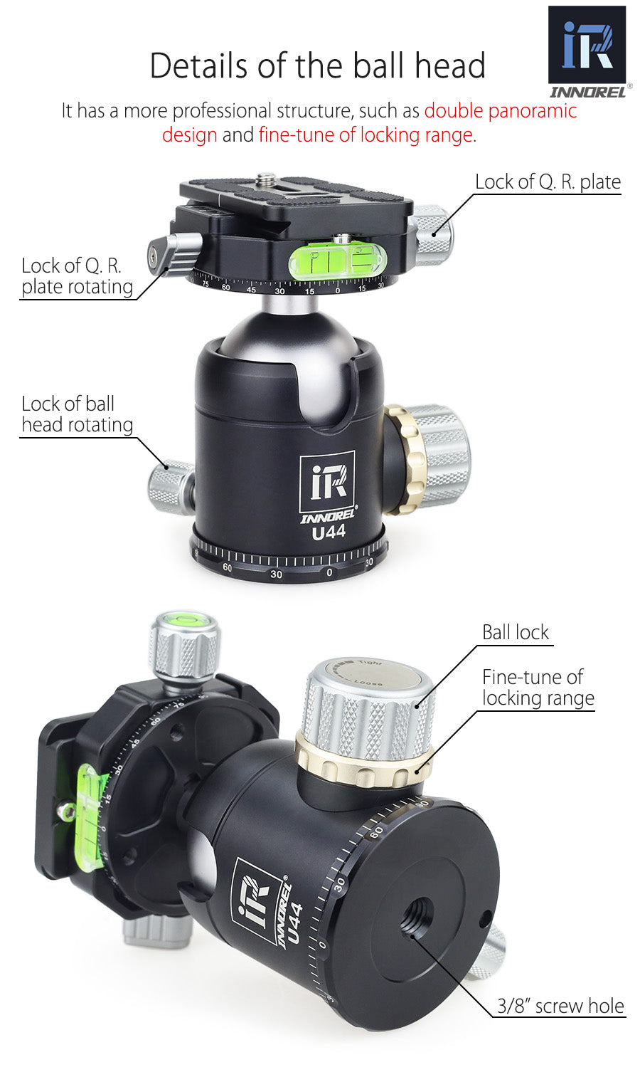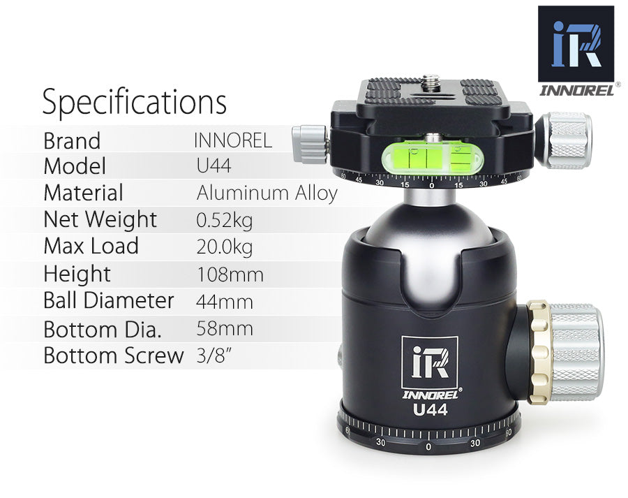 Tête rotative 720° pour trépied standard INNOREL U44 20Kg