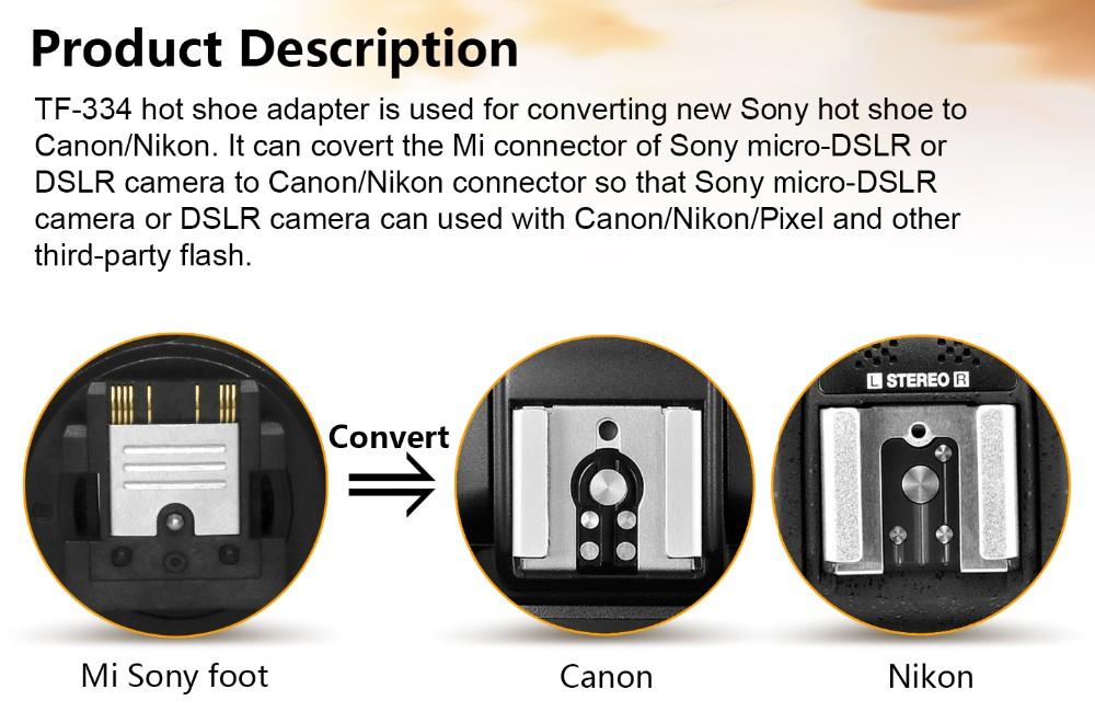 Adaptateur Flash PIXEL TF-334 pour sony A7 A7 iii A9 A7SII A7RII A7II A6000 A6500 etc...