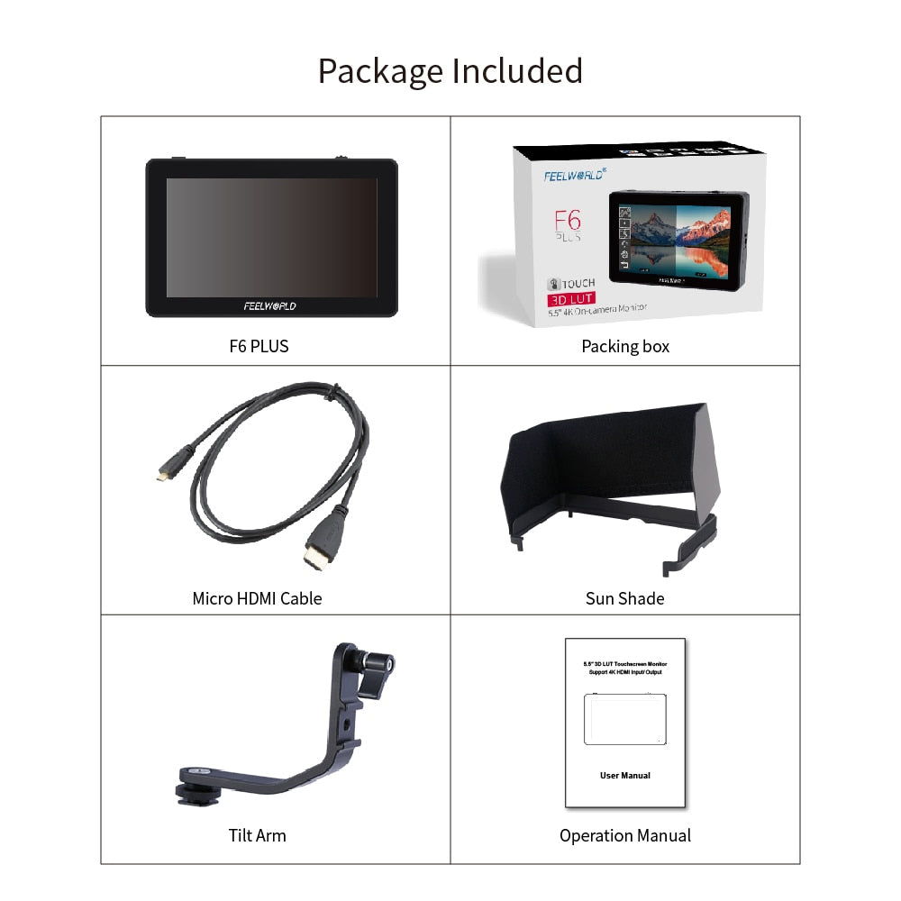 Moniteur FEELWORLD F6 PLUS 4K 5.5" 3D LUT FHD 1920x1080 écran tactile pour reflex, caméra