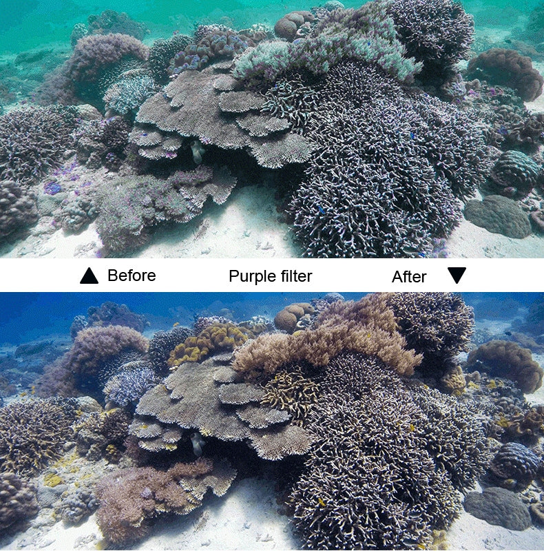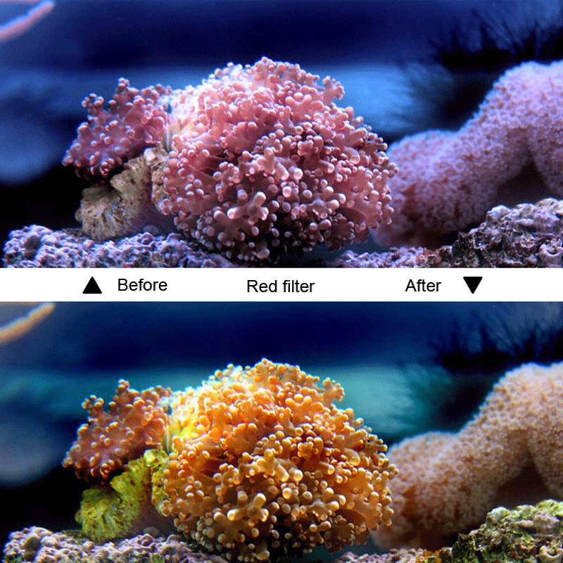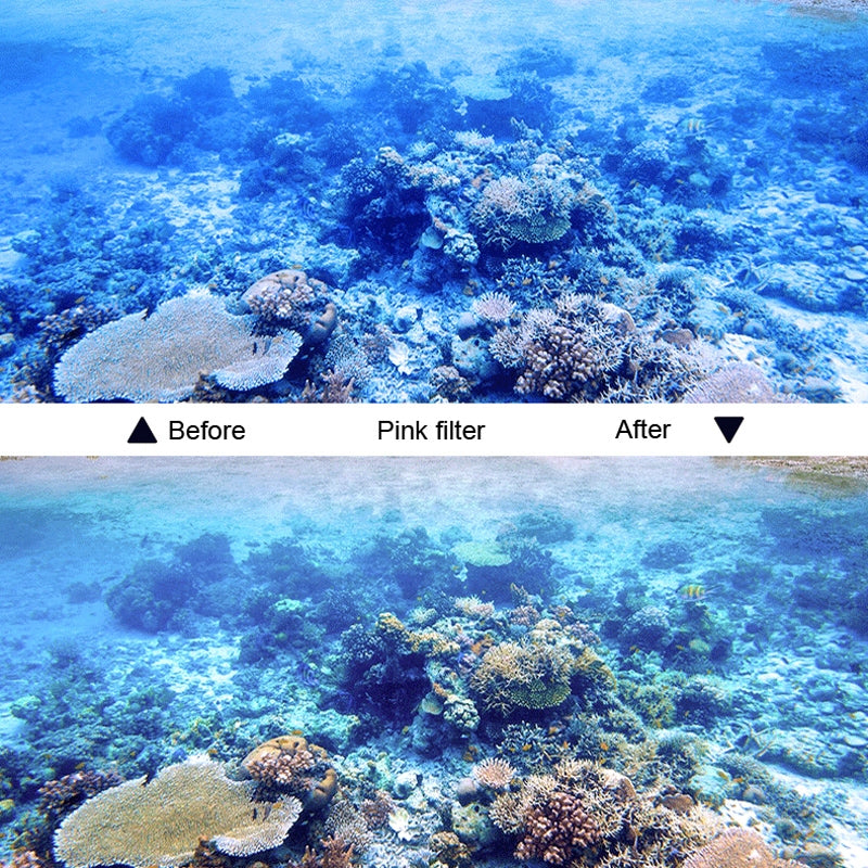 5. 3 filtres interchangeables pour rose violet rouge pour s'adapter à la couleur aquatique et atténuer les photo trop bleue ou trop vert.