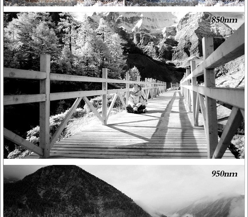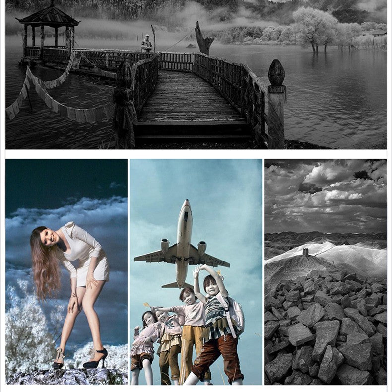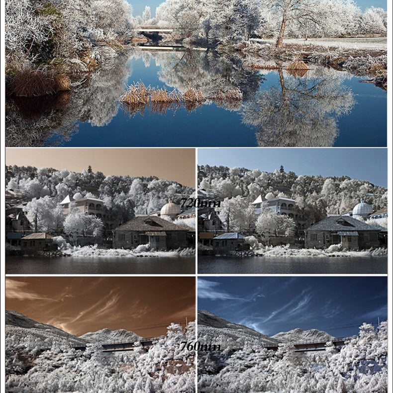 Voir les photos ci-dessous pour des photos comparatives avec et sans l'utilisation de ce filtre. Le filtre IR que nous proposons est à double filetage avec 680nm, 720nm, 760nm, 850nm et 950nm(IR680 IR720 IR760 IR850 IR950) pour objectif de 37mm, 43mm, 46mm, 52mm, 55mm, 58mm,62mm, 67mm, 72mm et 77mm dans notre boutique. Nous vous recommandons de choisir celles qui conviennent à votre appareil photo. Différents filtres IR ont des effets différents. Vous pouvez utiliser le filtre individuellement ou dans n'importe quelle combinaison pour répondre à votre demande.