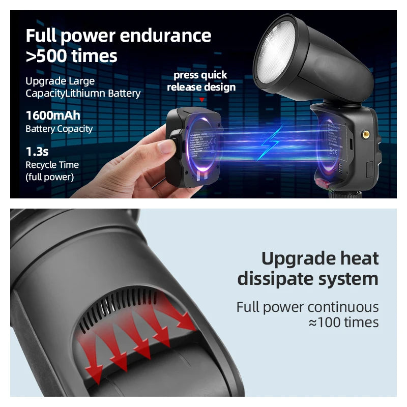 Flash JINBEI HD-2MAX Speedlite TTL HSS 1/8000s Tête Ronde Studio Flash Ω Tube pour Sony Nikon Canon Fujifilm Olympus