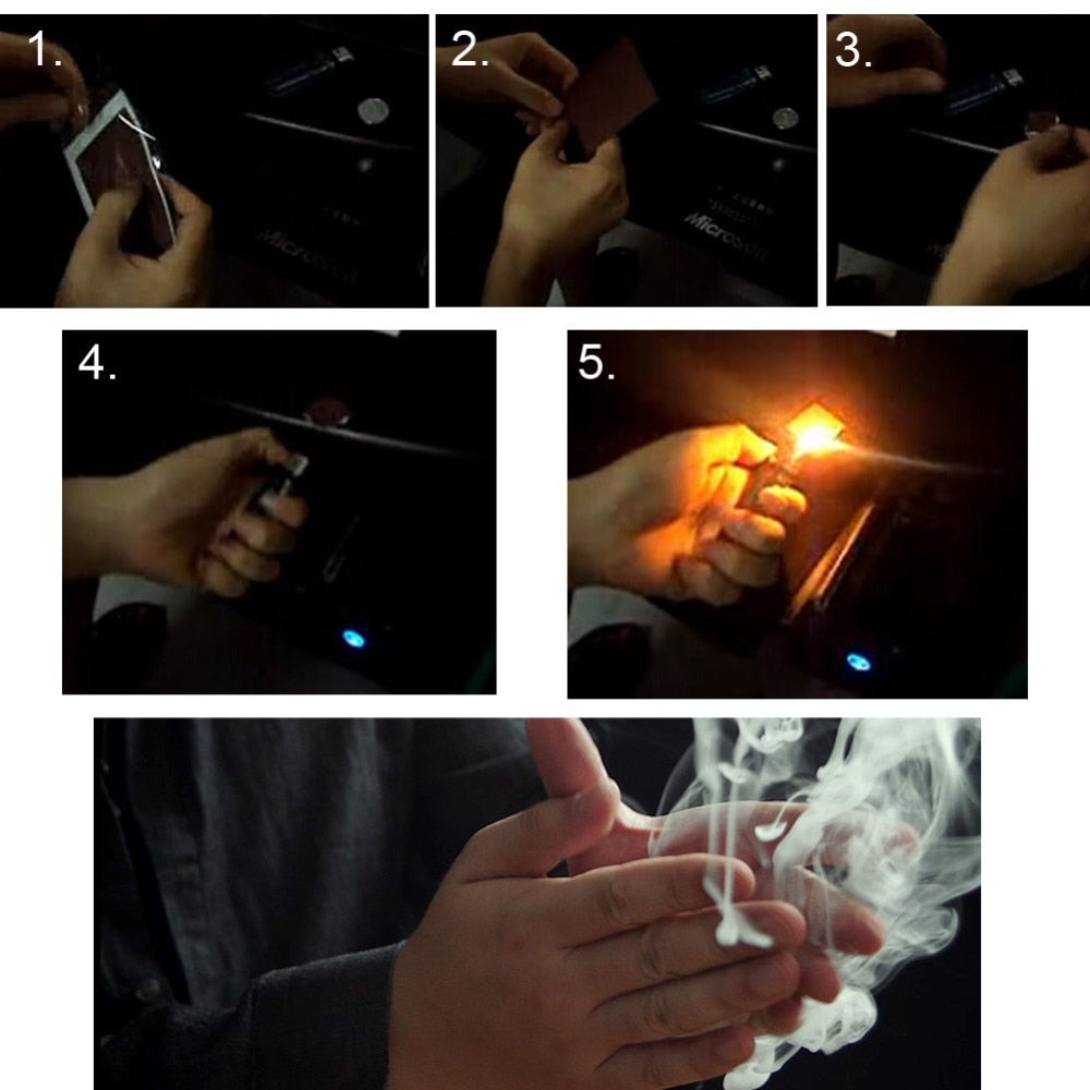 Le magicien met le pouce et l'index frotte doucement, la fumée se lève entre deux doigts.