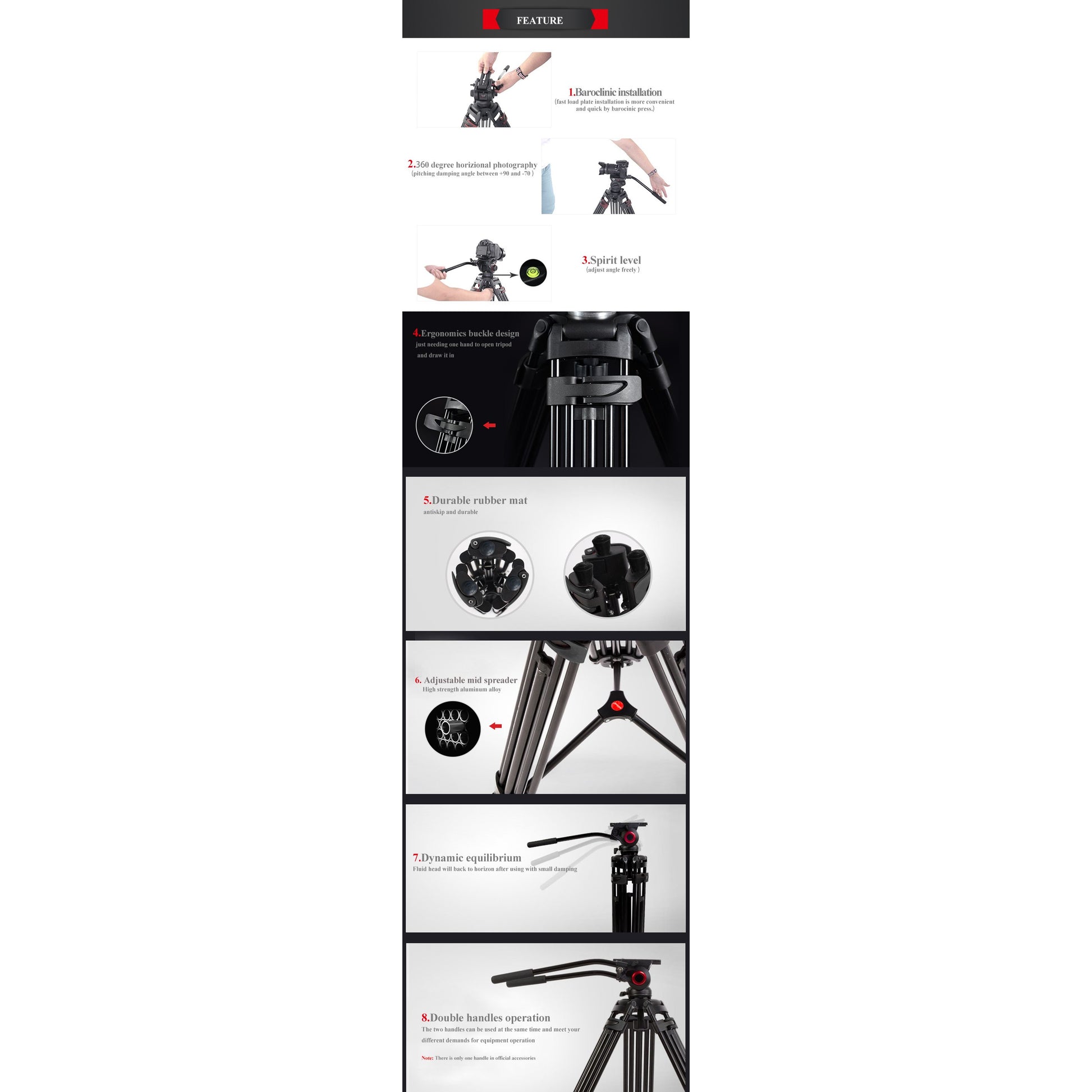 Équipé avec une fixation 1/4 " et 3/8 " pour fixer la plus part des reflex standard.