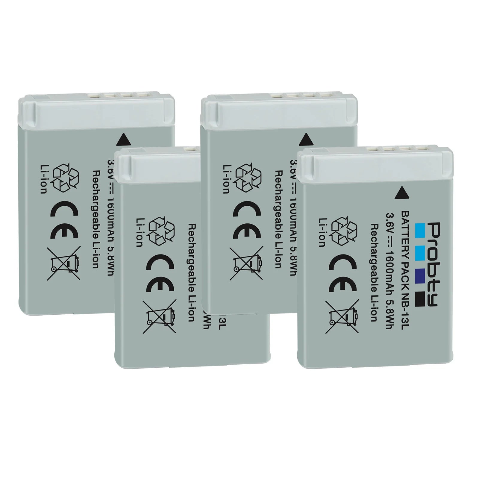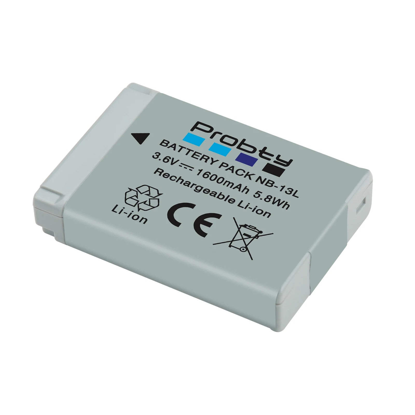 Batterie + chargeur Probty NB-13L NB13L NB-13LH 1600mAh pour Canon PowerShot G5X G7X G9X G7 X Mark II G9 X,SX620 SX720 SX730