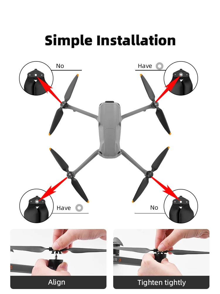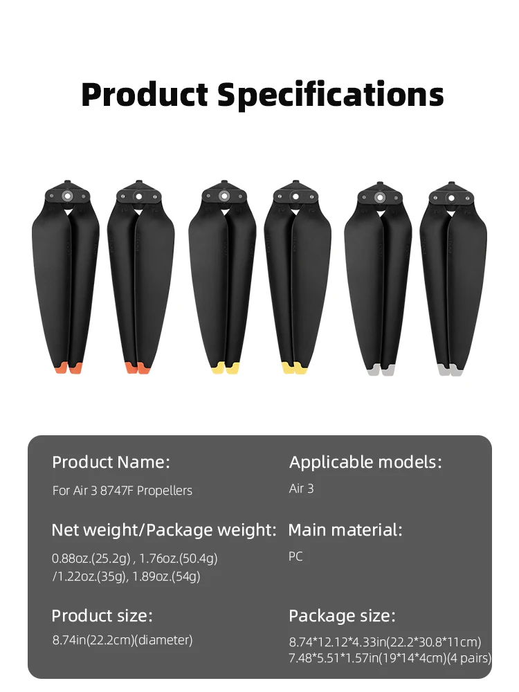 2 Paires Hélice de remplacement 8747F pour Drone DJI Air 3/Air 3S, à dégagement rapide