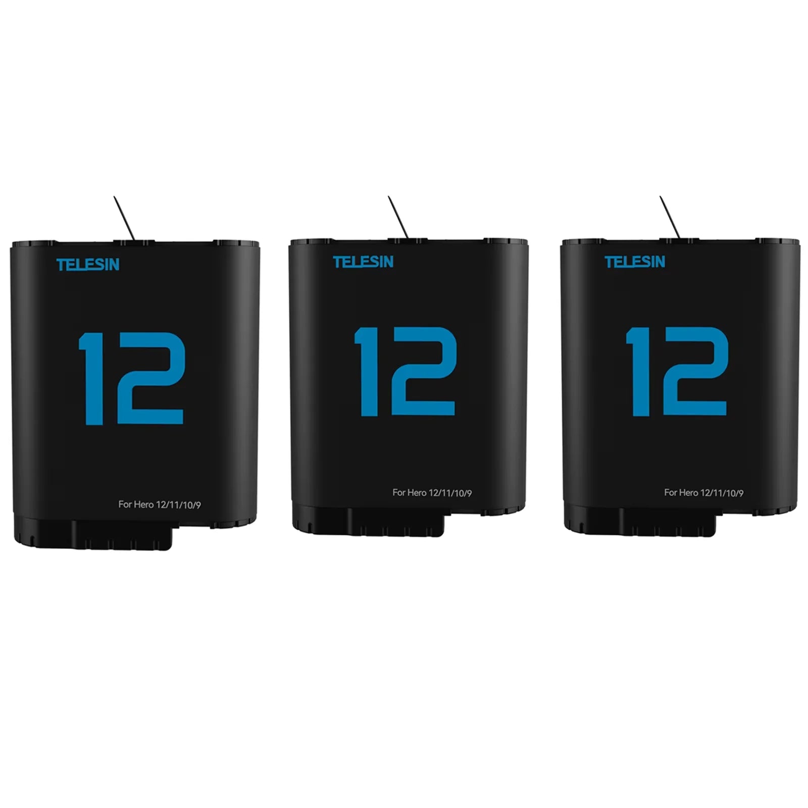 Batterie TELESIN pour GoPro Hero 12, 11, 10, 9, 1750 mAh + Chargeur Rapide à 3 Voies