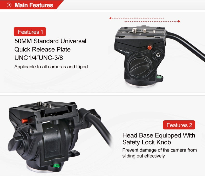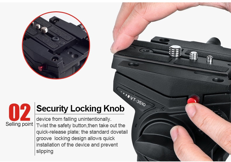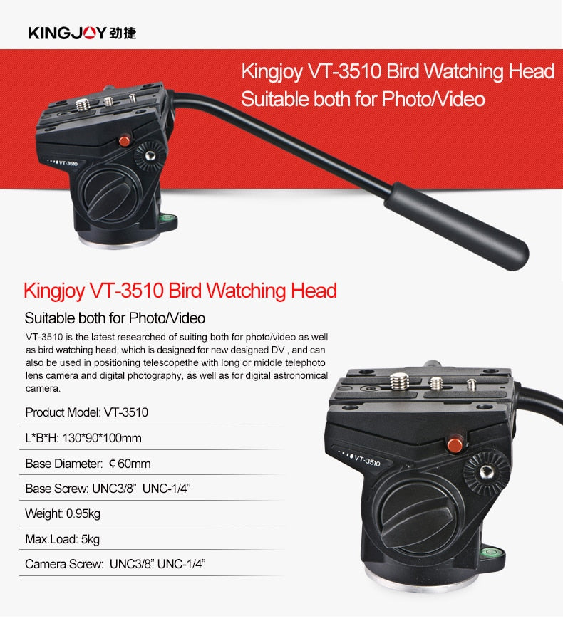 Le KINGJOY VT-3510 est une tête vidéo innovante et professionnelle, qui est développée pour simplement la solution la meilleure et la plus idéale pour les reflex numériques HD. Et il a une plaque coulissante qui se déplace pour équilibrer les derniers appareils photo à objectif interchangeable.