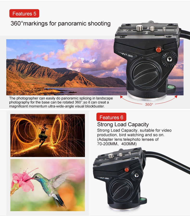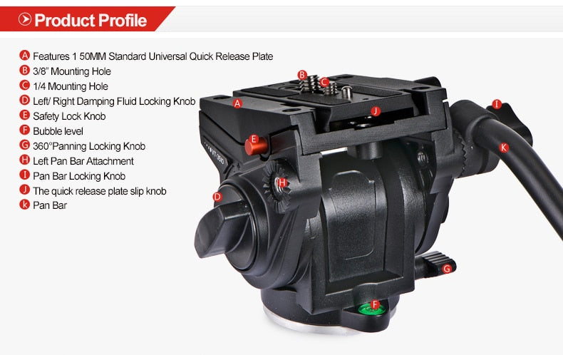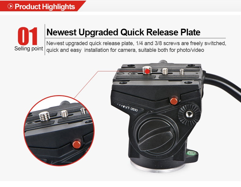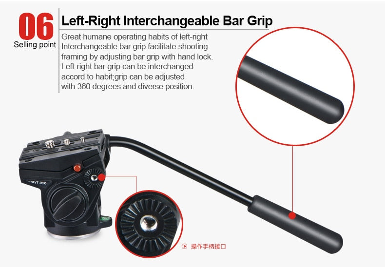 Tête fluide hydraulique panoramique KINGJOY VT-3510 pour trépied, reflex...